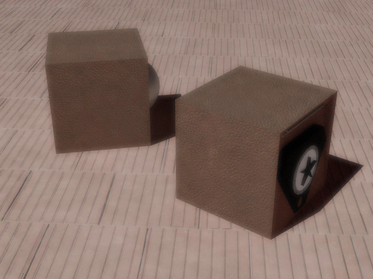Produktsprache: diese geometrischen Elemente bilden den Lautsprecher; ein Hexaeder mit sechs kongruenten Quadraten (Würfel), welcher hinten eine Halbhohlkugel und vorne eine geknickte Schallwand aufweist. In der Schallwand ist ein Breitbandchassis verbaut.